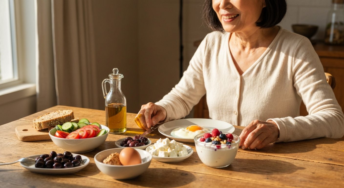 你知道嗎?早餐其實是開啟我們一天身心狀態的黃金鑰匙。尤其到了我們這個年紀,身體的運作模式跟年輕時不太一樣了,新陳代謝像個有點害羞的慢郎中,肌肉量也像銀行存款一樣,不知不覺就流失了一些。所以,早餐吃得對不對,不僅僅是填飽肚子,更是為了一整天的活力打好基礎,甚至是為長遠的健康存本錢。很多人都聽過「地中海飲食」對身體很好,連續好幾年都被評選為全球最佳的飲食法,但總覺得好像很複雜,要準備很多特別的食材。其實一點也不會!地中海飲食的精神,就是多吃天然、少加工的「原型食物」,像是大量的蔬菜水果、好的油脂、全穀類和優質蛋白質。 把它應用在早餐上,不但簡單,而且還能讓你有個神清氣爽的開始。