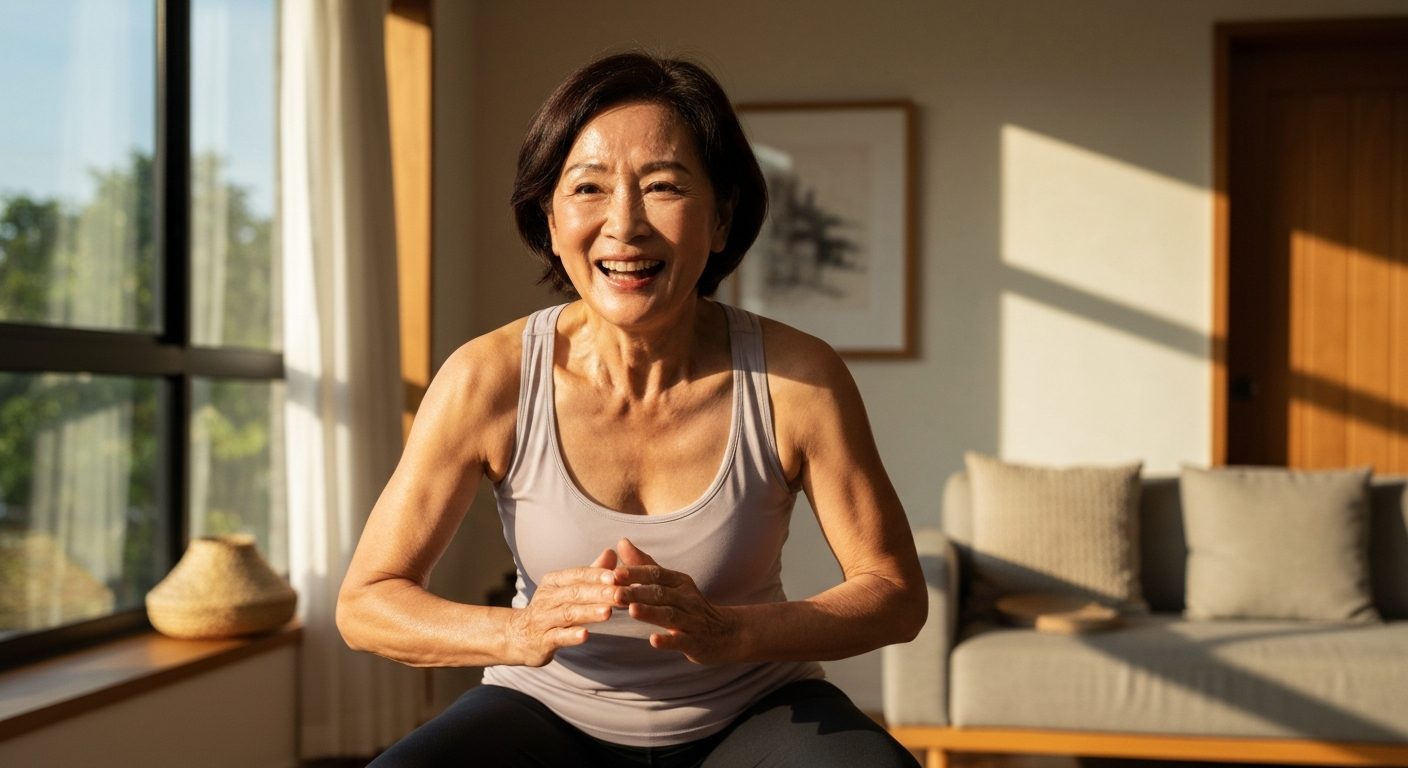 接下來就是我們今天的主菜了!這八個動作是從數十種 HIIT 動作中,精挑細選出來最經典、最有效,也最適合我們熟齡朋友在家練習的組合。我們會以「運動 20 秒,休息 40 秒」的節奏來進行。你可以準備一個計時器,或者在心裡默數。千萬不要小看這短短的 20 秒,我們的目標是在這 20 秒內,盡自己最大的努力,做到安全範圍內最快的速度,然後在接下來的 40 秒徹底放鬆、調整呼吸。準備好了嗎?我們開始吧!
